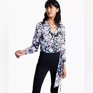 BAR III Floral-Print Wrap Top, long sleeve, women’s shirt size XXL
