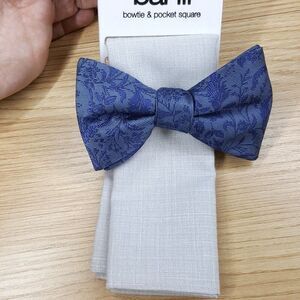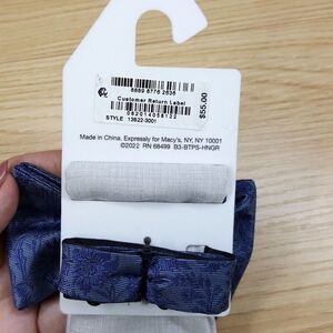 BAR III Mens Blue Floral Brocade Textured Bow Tie Gray Pocket Square Set