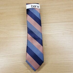 BAR III Mens Neck Tie Blue Coral Diagonal Stripe Modern Slim Classic Pointed