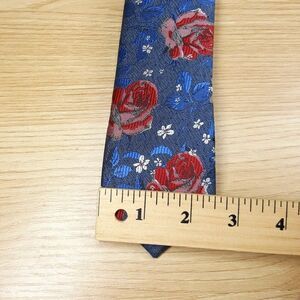 BAR III Mens Neck Tie Blue Floral Roses Slim Pointed Woven Textured Silk Blend