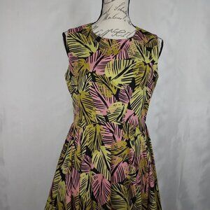 BAR III | PALM LEAF FIT N FLARE SKATER DRESS | Size M