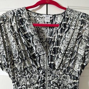 BAR III Snakeskin Print Zipper Front Cinched Waist Short Sleeve Dress Medium