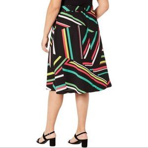 A playful, modern print decorates every inch of this plus size skirt from Bar III, in an enviable A-line silhouette with a matching self-tie belt for added coverage.