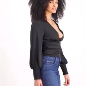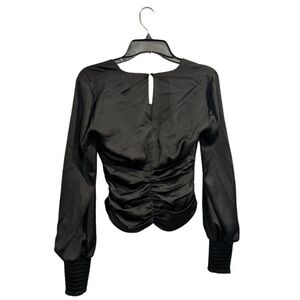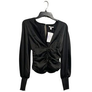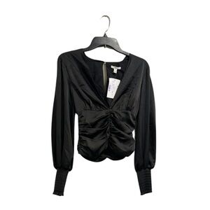 BAR III V-Neck Ruched Blouse size 0 Cupid Button Closure Long Sleeve black