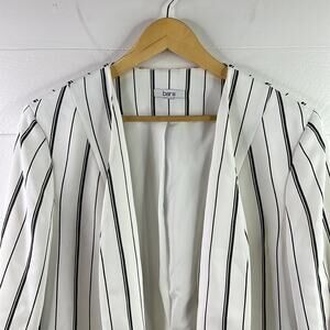 BAR III White Black Striped Collarless Open Front Blazer Suit Jacket Size Large