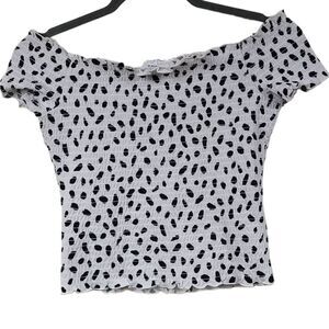 BAR III Women's Black & White Animal Printed Off-The-shoulder Smocked Fitted Top
