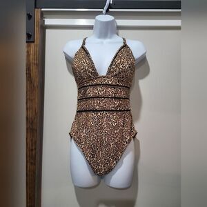 BAR III Women's Bonita Cheetah X-Back One-Piece Swimsuit NWOT size Large