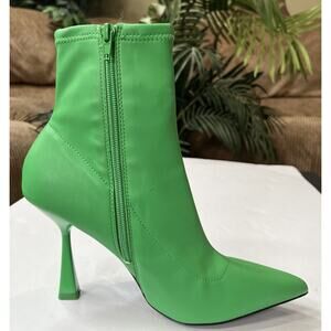 BAR III Womens Green Stretch Comfort Olevia Pointed Toe Flare Zip-Up Booties 8.5