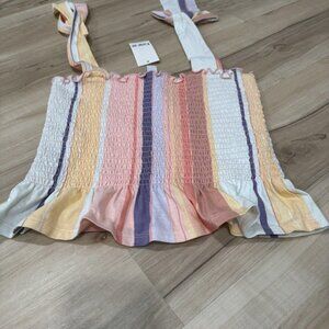 BAR III Women's Sherber Striped Cotton Smocked Peplum Tie-Strap Top SZ Xsmall Xs