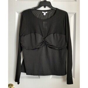 BAR III Women's Top Oct Fash Long Sleeve Pullover Twist Front Illusion Black Size 1X, SHEER, FAUX CORSET 121