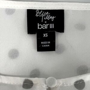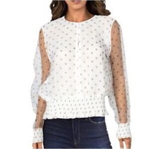 BAR III Women’s White Sheer Polka Dot Long Sleeve V Neck Top