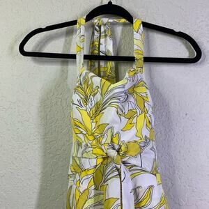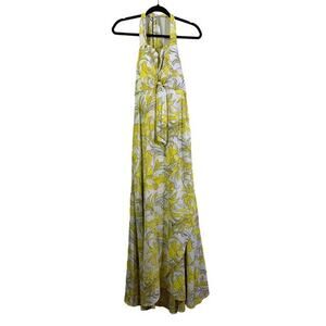 BAR III Yellow & White Floral Prism Garden Halter Tie Waist Maxi Dress Size 6