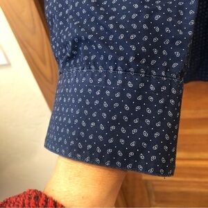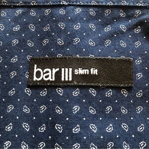 BAR III/Men’s Button Up Shirt/ Slim Fit / Easy Care/ 17-17.5 / 34-35 / XL / navy blue with small tiny white design/ Excellent Condition Rarely used