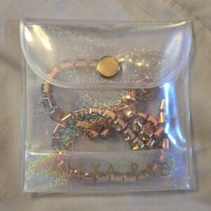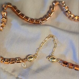 This Ava necklace is gorgeous. Ava is 17" with a 3" extender. Magnetic closure for easy on and off and very light weight. French brass with an enamel overlay. Nickel free. There is plenty of sparkle and shine. Wear Ava casual or dressy. I do not remember the name of the color, but I think it's cinnamon. New, no tags. Jewelry will come in a BAR pouch without a tag.