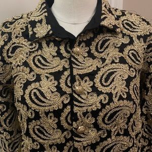 Barabas Women’s Button Down Shirt Gold Paisley Embroidered size S
