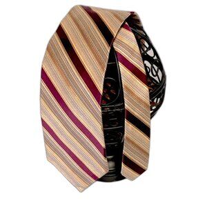 Vintage SILK Striped Tie Purple Copper Blue Tan Collectibles by Barbara Blank 3.5" Wide