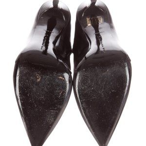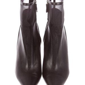 Black leather Barbara Bui pointed-toe ankle boots with covered heels, mesh panel at uppers and side zip closures.