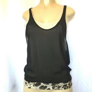 BARBARA BUI Silk tank top Sleeveless Deep neckline Layered construction Animal print bottom trim Silk, Cotton Size: XS Pit to pit: 16", Waist: 15" Length: 23.5" EXCELLENT condition! No rips, stains, tears or other damage. Please refer to pictures. 00017/0090