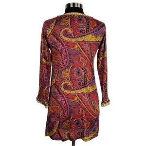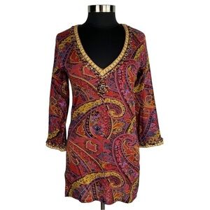BARBARA GERWIT COTTON PAISLEY FLORAL V NECK BEADED TUNIC