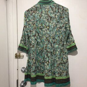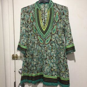 Barbara Gerwit Embellished Tall Blouse, Lightweight Size S, Multicolor Floral Print, 100% Cotton, Embellished V Neck, Cuffs, and Bottom, Three-Quarter Sleeves, Swing Blouse, Closure Pull Over, in Good Condition, Summer Blouse, Great Look Great Fitting.0