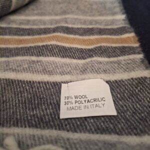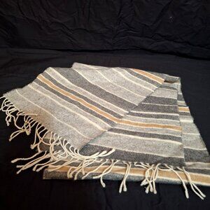 BARBAROSSA Italy Gray Tan Wool Blend Blanket Stripe 62” Fringe Scarf Muffler