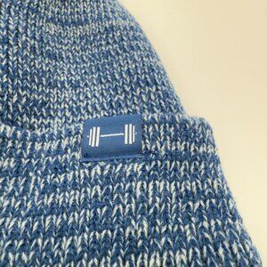 BARBELLA Blue Marled Knit Barbell Logo Beanie Acrylic Cuffed Winter Hat