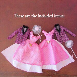 BARBIE BRIDESMAID DRESSES + GROOMSMEN JACKETS for KEN & FRIENDS, 2 of EACH