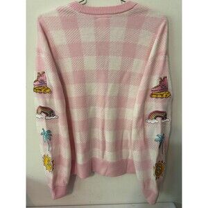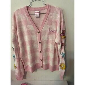 Get decked out in this 2 piece set! Barbie pink checked heart button down cardigan w/side patches on both sleeves. Great preowned condition. AND NEW plush pillow pink Barbie purse!