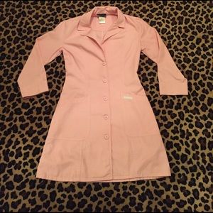 🎀Barbie goes to college in the awesome pink lab coat lol I couldn't find one online So I bought a white one, and dyed it pink myself with fabric dye. (Safe to wash with other like colors) but even when buying a Cherokee XS it swallowed me! So I got it altered to fit me at the time of about 100-110 pounds and I'm 5 feet tall. I will warn though the lady did the sleeves a little short but that can easily be altered, the fabric wasn't cut just hemmed. EUC 💋Lots of awesomeness left!! 💕 would make an awesome Doctor Barbie Halloween costume!!