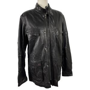 BARBOUR INTERNATIONAL MEN'S SADDLER BLACK LEATHER JACKET SIZE XL MLT0060BK31