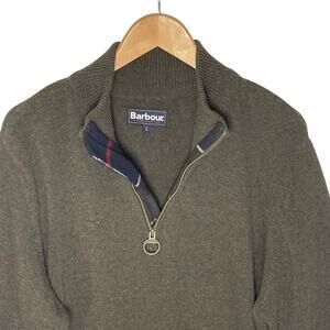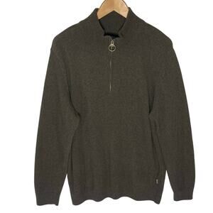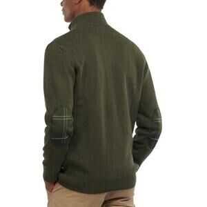 BARBOUR Men’s Holden Wool Pull Over 1/4 Zip Elbow Patch Sweater Green