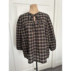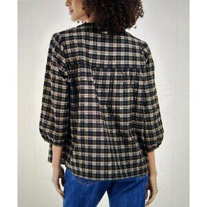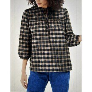 BARBOUR Modern Heritage Lorelle Top Blouse in Black & Brown Praline Size 14