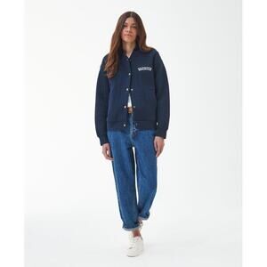 Taking style notes from classic varsity silhouettes, the Barbour Chesil Bomber Jacket boasts sporty ribbed trims and press-stud fastenings for an authentic look and feel. Chain-stitch embroidery to the chest offers a hint of signature branding, while the all-over quilted jersey fabric provides cosy warmth.
