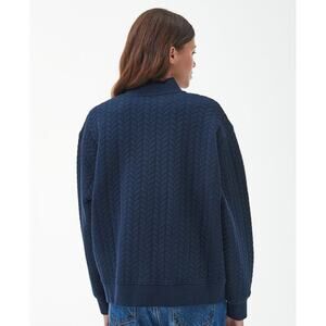 BARBOUR Oversized Chesil Overlay Quilted Jacket Snap Button Navy Blue Size 4