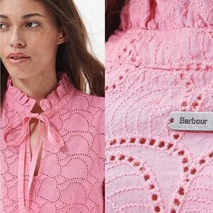 BARBOUR Palmetto Broderie Anglaise Cotton Dress in Hibiscus $175