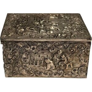 BARBOUR SP Cigarette Box Villagers Folk Dancers Repossess Hallmarked 3275 Rare
