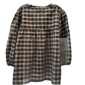 Puff sleeve balloon sleeve plaid check black brown and tan prairie peasant top. Beiatifully made and super cute - just not for me. Someone will love this generous size 14 British classic.