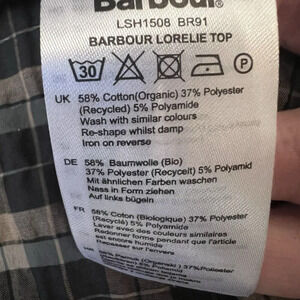 Stylish plaid blouse by Barbour. Features a classic check pattern. Comfortable and versatile design.