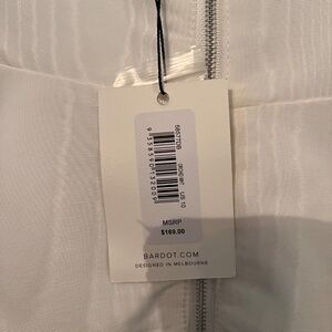 The Annabelle dress from Bardot features a softly structured bodice and plunging V-neck. This mini-length piece is finished with an exaggerated statement bow at the waist for a ruffled illusion.