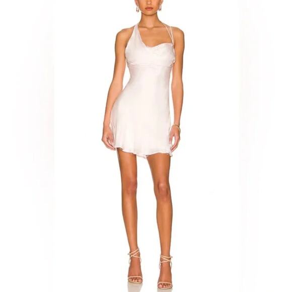 BARDOT Astrid Pink Satin Asymmetrical Fit & Flare Strappy Mini Slip Dress Small