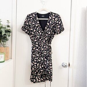 🦋 BARDOT Black Floral Self Tie Flip Wrap Dress 6 Small Mini Casual Cottagecore