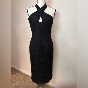 ! BARDOT Black Lace Halter Cross Neck MIDI Tea Length Dress Sz 8 NWT (A0059 B3)