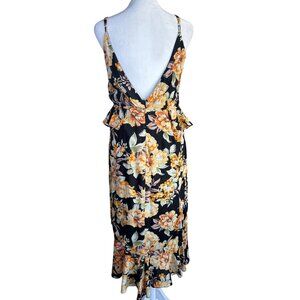BARDOT Dress Black Hi-lo Hem Spaghetti Strap Midi Party Faux Wrap Flounce Small