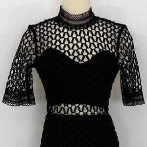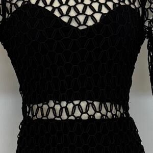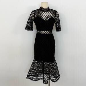 BARDOT Fiona Mesh Short Sleeve Trumpet Midi Dress in Black US 4/XS NWT