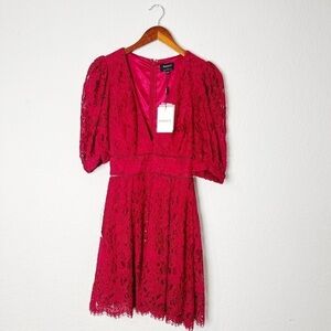 BARDOT KIRA MINI LACE DRESS IN CRIMSON RED