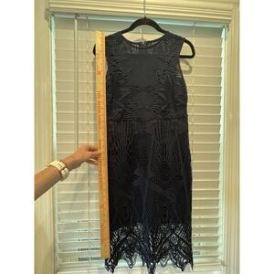 BARDOT Lace Pencil Navy Blue Sexy Sheer Top Midi Dress Date Formal Sz 6 Small