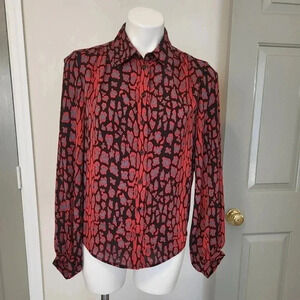 BARDOT Mona Leopard Animal Print Button Down Business Causal Blouse(6)