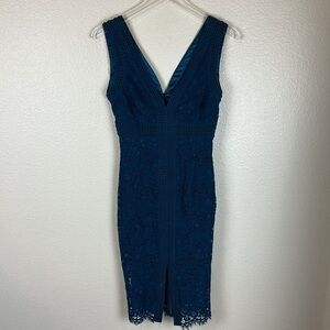 BARDOT Morgan Front Slit Lace Cocktail Dress in Ash Blue