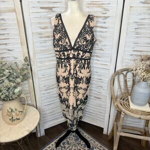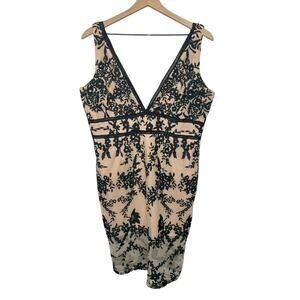 - BARDOT NEW Women's 12 XL Embroidered Nude Black Overlay Midi Dress Sexy Sheath -