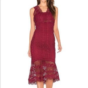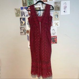 BARDOT ODYSSEY CROCHET LACE V NECK SLEEVELESS BODY CON DROP HEM MERMAID COCKTAIL